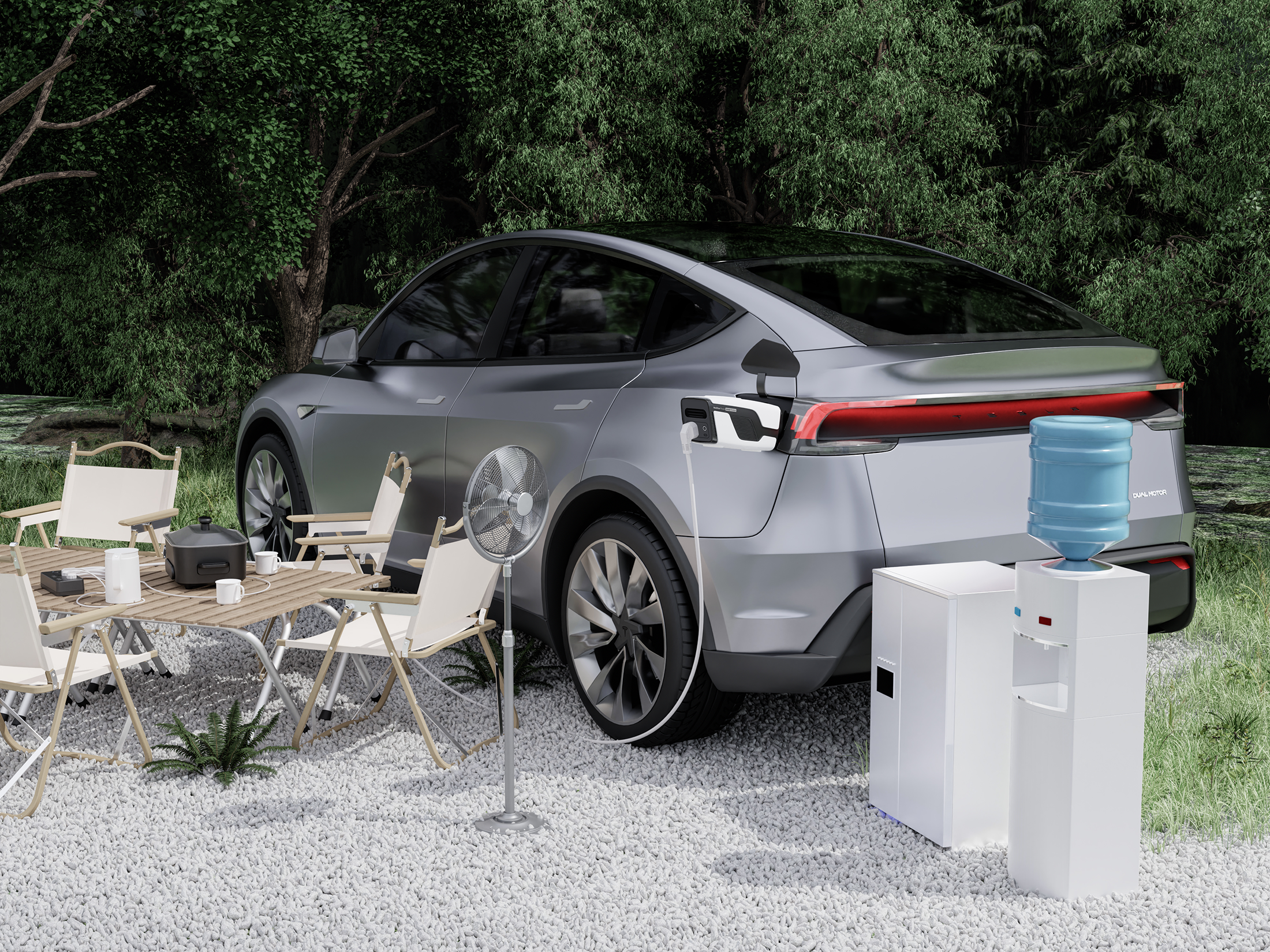 除小鹏MONA M03之外,特斯拉、蔚来等品牌车型同样未搭载双向OBC硬件,均可使用唯电宝直流口放电枪实现外放电,享受这本该拥有的电车露营生活;而原车自带放电配置的如小鹏G6、G9、X9、P7i、P7+、P5等车型,则可直接使用小巧轻便的唯电宝AC交流放电枪。